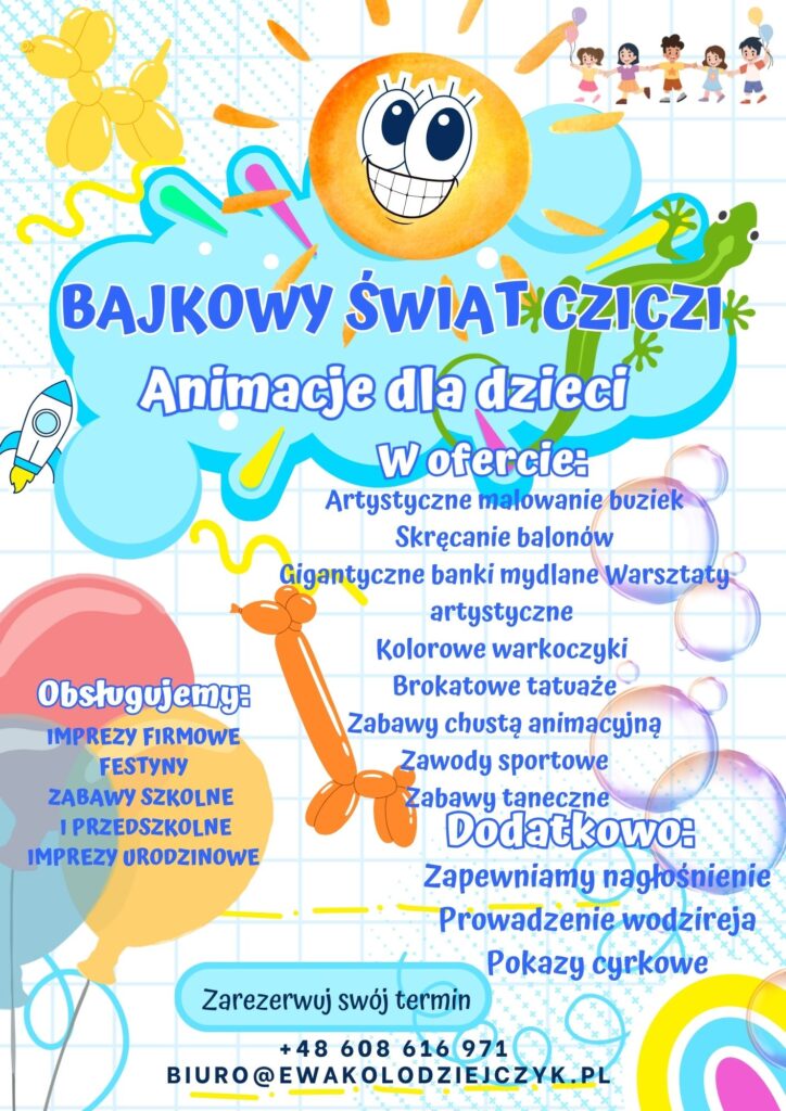 Organizujesz festyn, imprezę firmową, urodziny dziecka? Nasza rozbawiona ekipa animatorów rozkręci każdą imprezę.